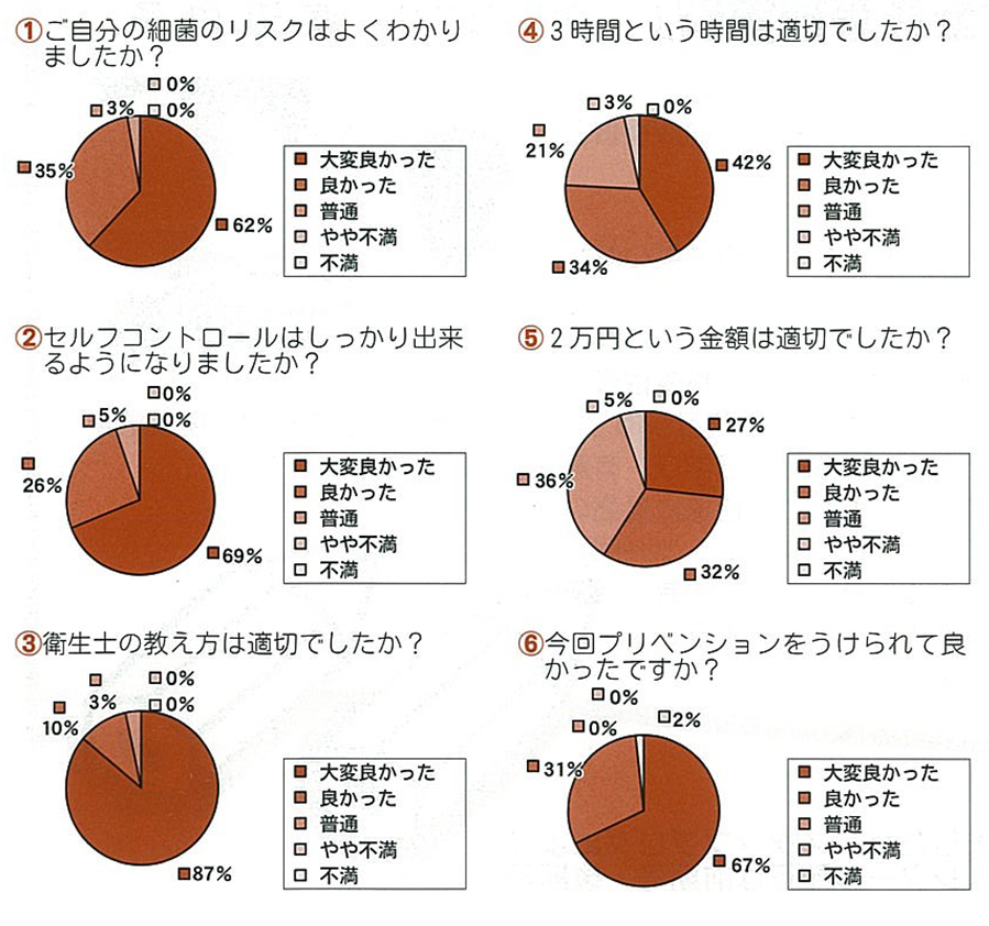 宝沢伊藤歯科医院が目指す予防中心の歯科医療のためには欠かす事のできない重要なプログラムであると認識しています。これからもさらに充実したプリベンションができるよう研鑽を積んでいきたいと思います。皆様も何かお気づきのことがございましたら、いつでもスタッフにお声かけください。アンケートありがとうございました。